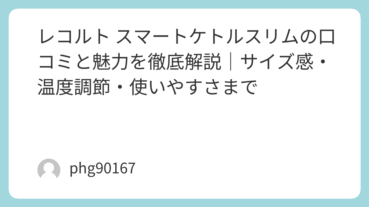 レコルト スマートケトルスリムの口コミと魅力を徹底解説|サイズ感・温度調節・使いやすさまで