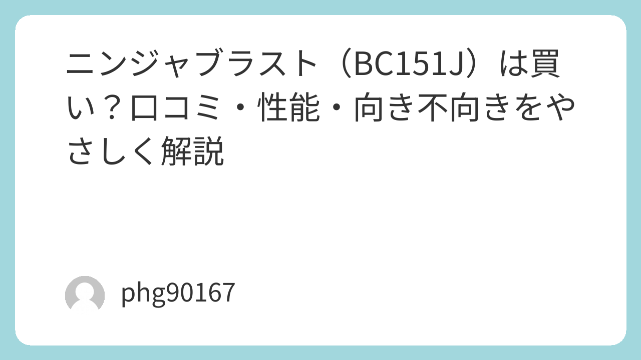 ニンジャブラスト(BC151J)は話題になることも多く、気になっている方も多いと思いますが、どんな人に向いていて、どんな人には合わないのかを先に知っておくことで、購入後の後悔をぐっと減らすことができます。